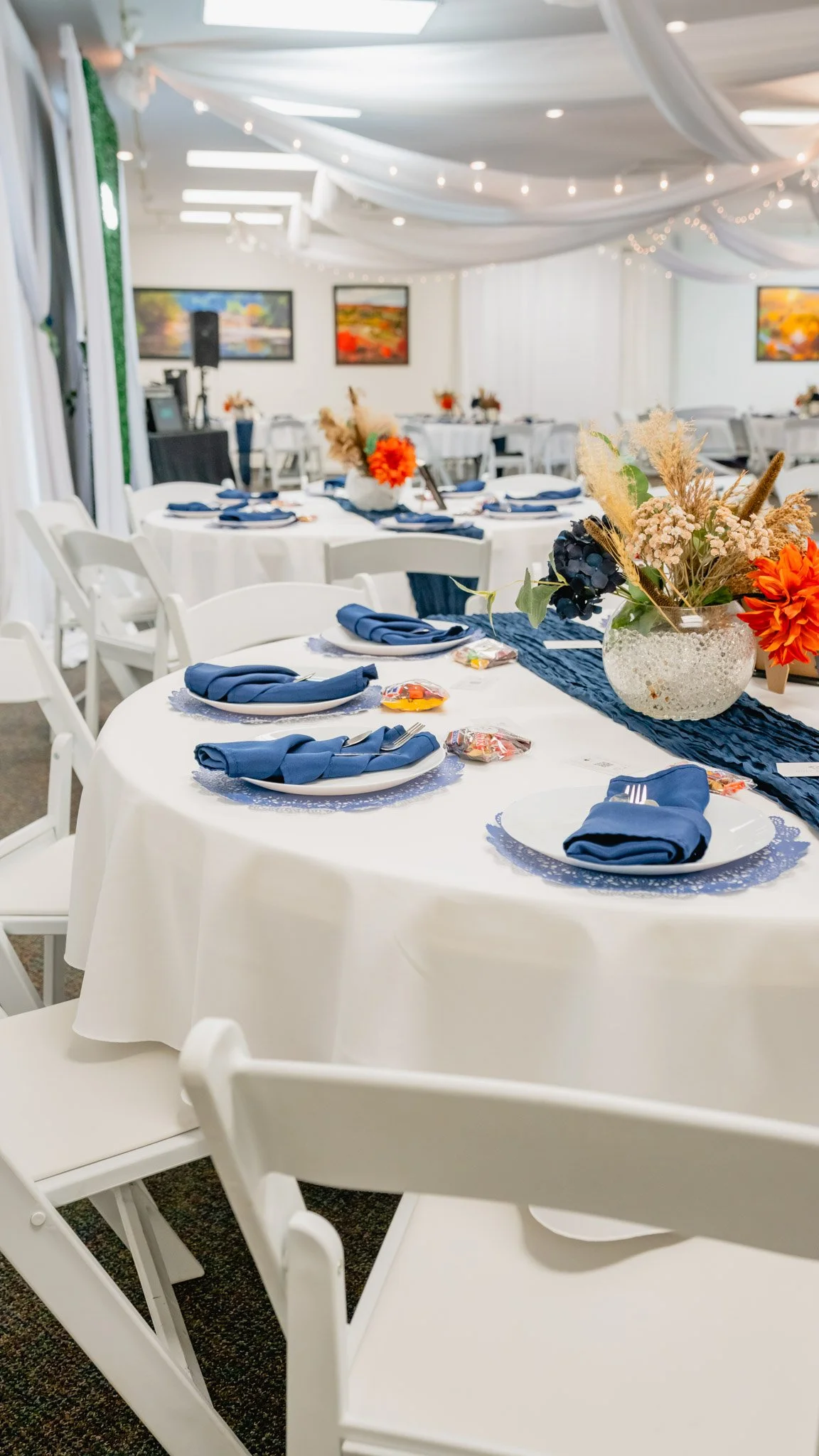Our main reception space welcomes you with a warm blend of modern style and farmhouse charm. Large windows invite natural light while showcasing views of the surrounding countryside. With plenty of room for dining, dancing, and celebrating, the Wings Gallery Reception Center is the heart of your reception—where laughter, music, and memories fill the night.